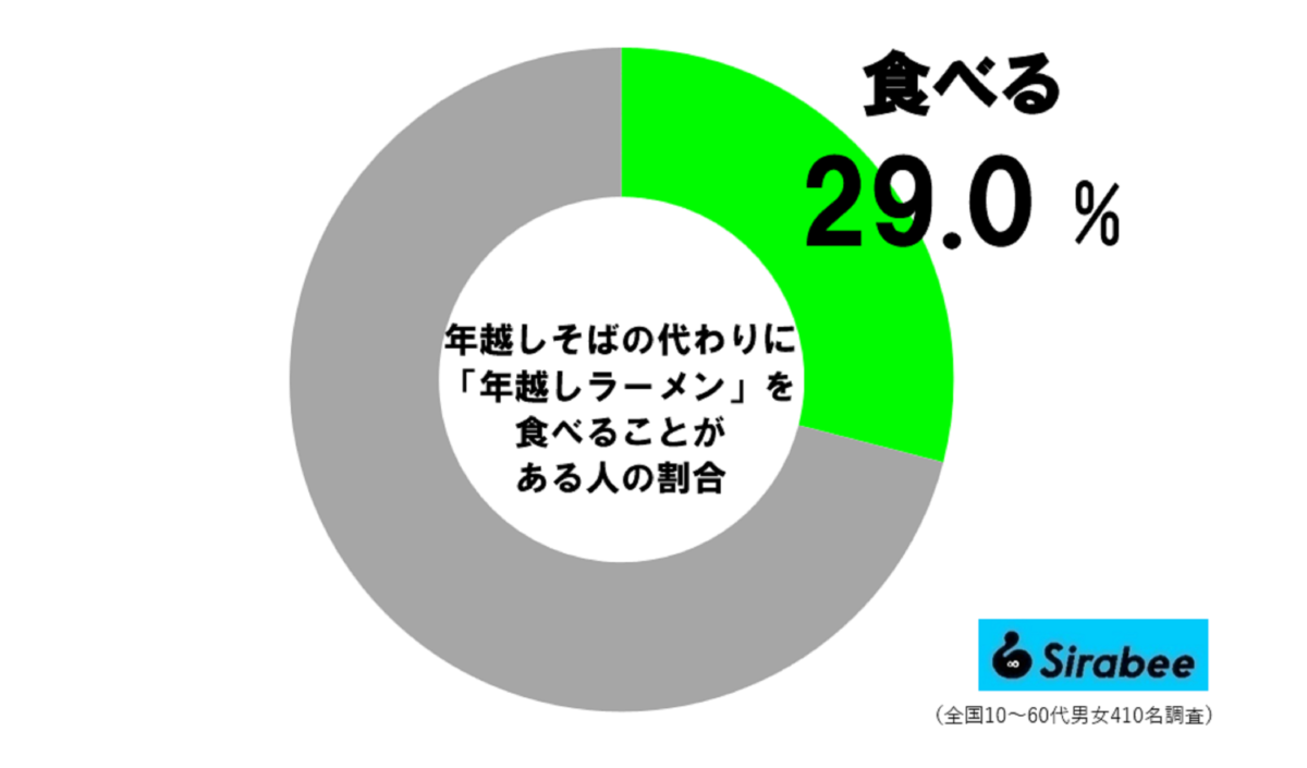Sirabee編集部が全国の10代~60代の男女410名を対象に実施した調査では、全体で29.0%の人が「年越しそばの代わりに