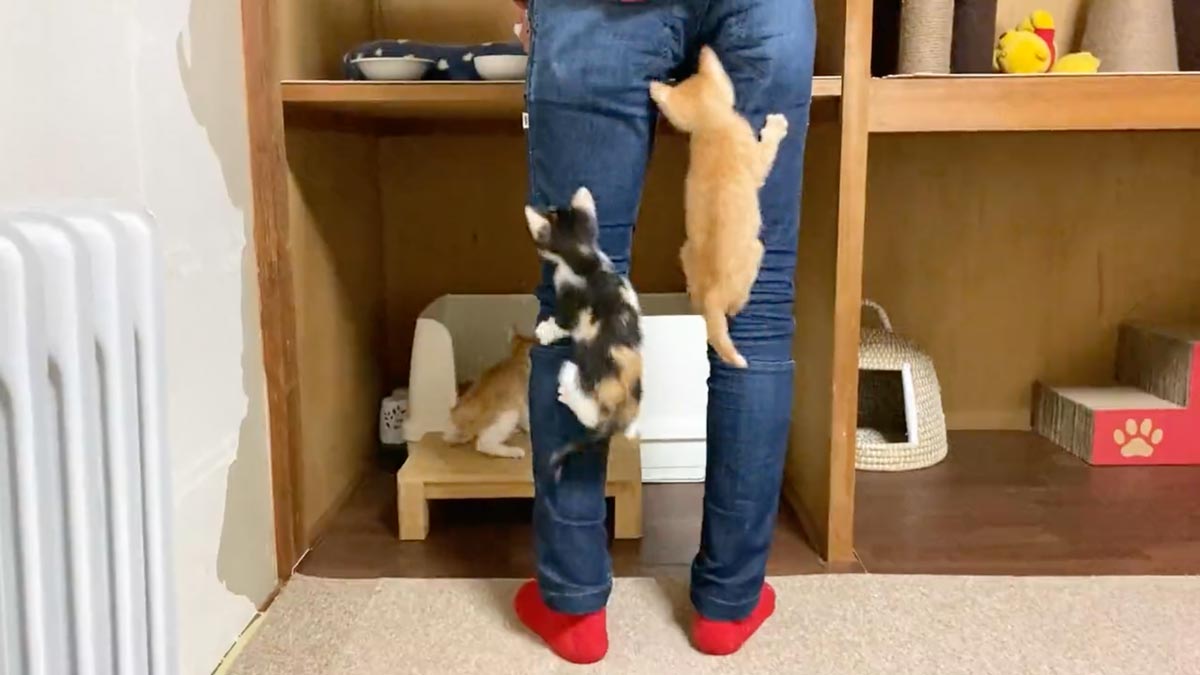 【ビーチフラッグ?】爆睡中ご飯に気づいた子猫が猛ダッシュ