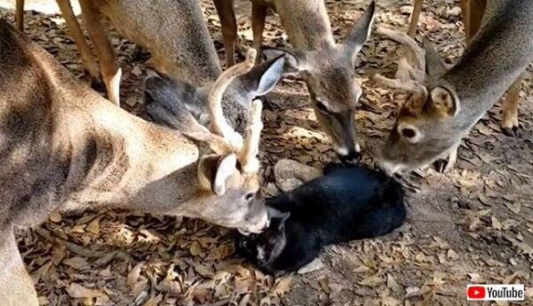 猫に群がる鹿たち みんなで猫をペロペロ [きつねうどん★]