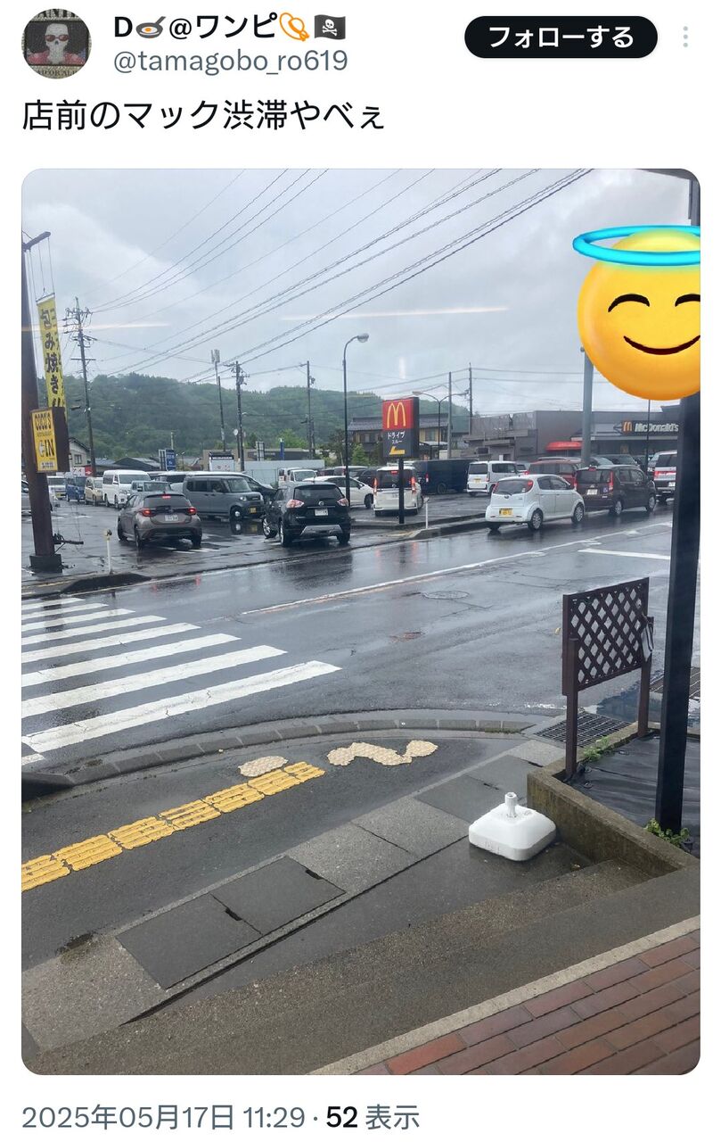 モバイルオーダー(店内)で20分ちょい待ったが、ドライブスルーの人らは1時間待つんじゃないかという感じ