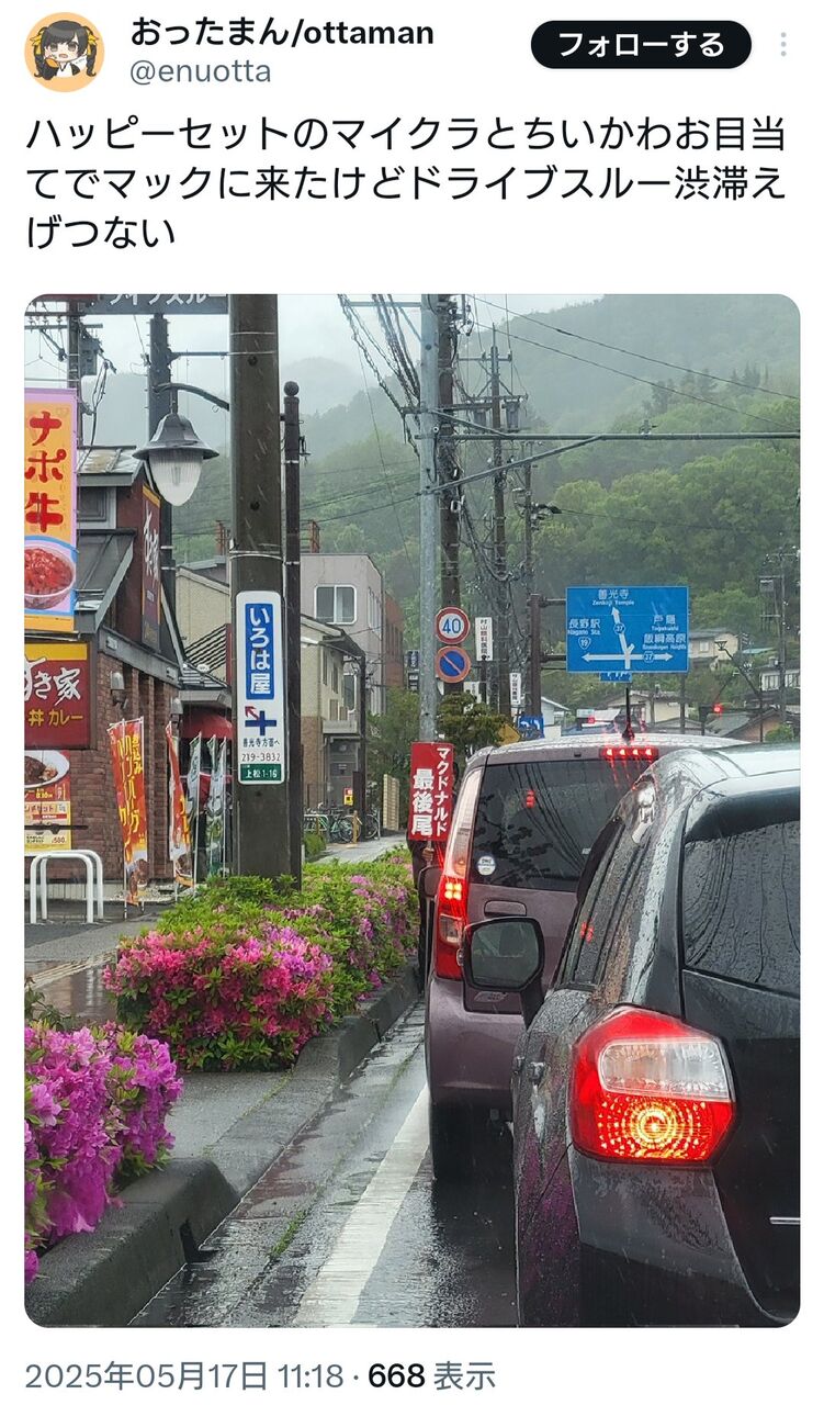 昨日の11時過ぎに行ったらドライブスルー誰も並んでなかったぞ