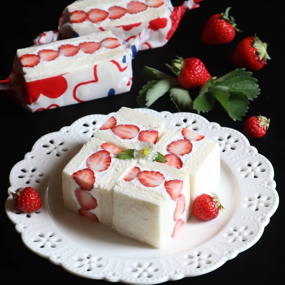 >このイチゴサンド、日本ではおなじみの「フルーツサンド」にヒントを得て、イチゴとホイップクリームチーズを甘めのパンでサンドしています。