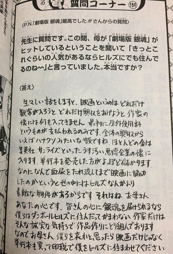 銀魂の空知先生ぶっちゃける