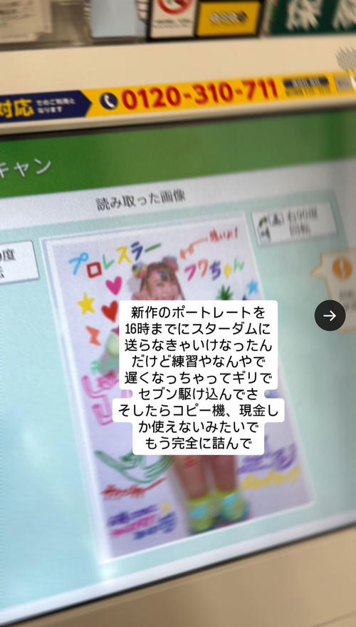フワちゃんのポストによると、入団した女子プロレス団体「スターダム」に新作ポートレートを送ることになっていたが「練習やなんやで遅くなっちゃってギリでセブン駆け込んでさ そしたらコピー機、現金しか使えないみたいでもう完全に詰んで」と、現金を持ち歩かなかったために写真をプリントするコピー機が使えない状態に陥ったという。