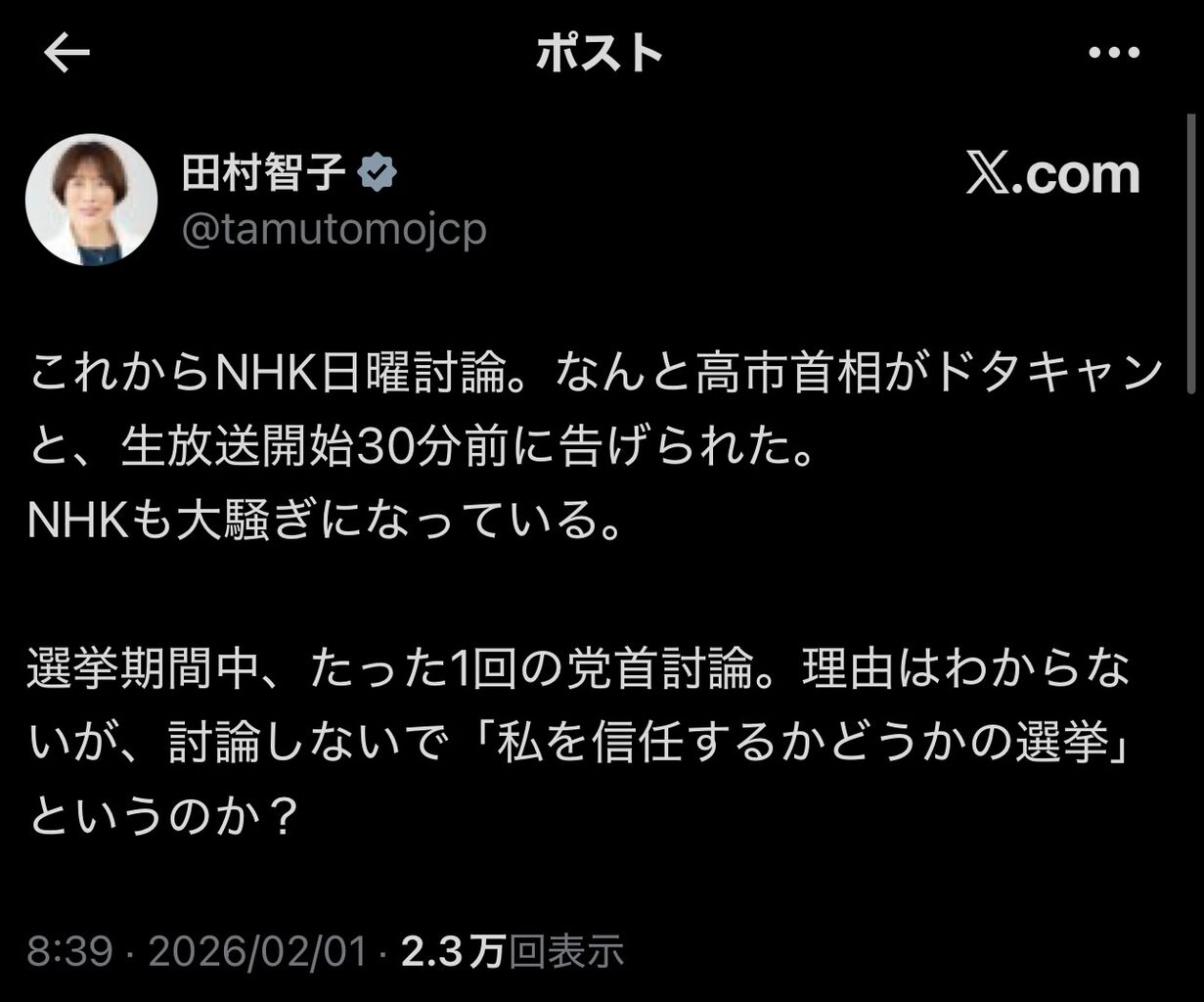 わざわざ直前で出演を断ったのは高市なりの仕返し