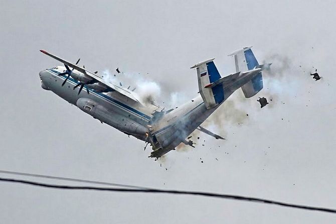 空中でポッキリ...ロシア軍の「世界最大のプロペラ機」大型輸送機An-22墜落 「落下の瞬間」映像が拡散!