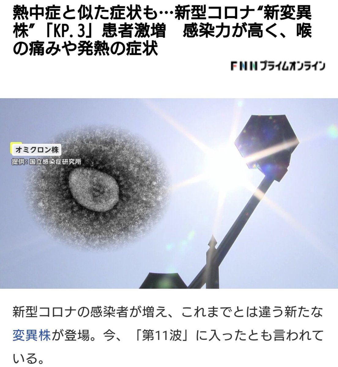【悲報】新型コロナ新変異株「KP.3」の誕生で患者激増 第11波に突入...