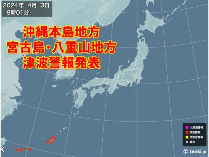 【地震】沖縄本島・宮古島・八重山に津波警報 台湾東部では震度6強の揺れ 東部海域でマグニチュード7.2
